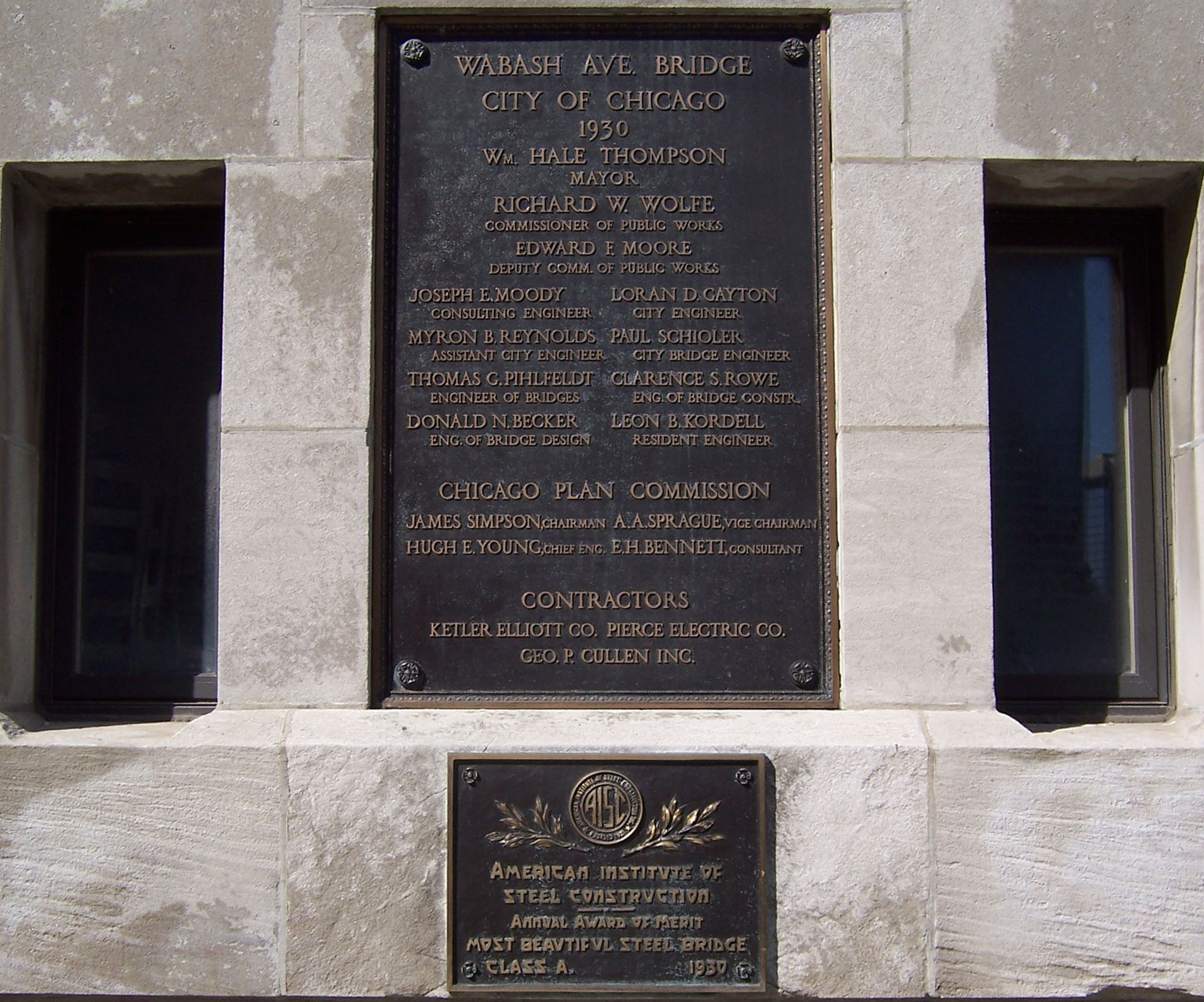 The plaques on the N. Wabash Ave bridgehouse - an AISC award winner for 1930