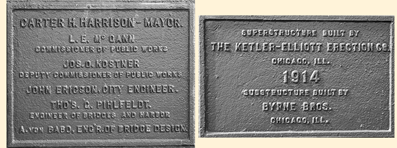 In 1911, a bond issue provided the funds for this bridge as well as a number of bridges downtown including those at Washington Blvd., Grand Ave., Chicago Ave.. Not surprisingly, a comparison of these bridges shows the similarities in the supporting pony trusses. These are all second generation Chicago-type bridges.