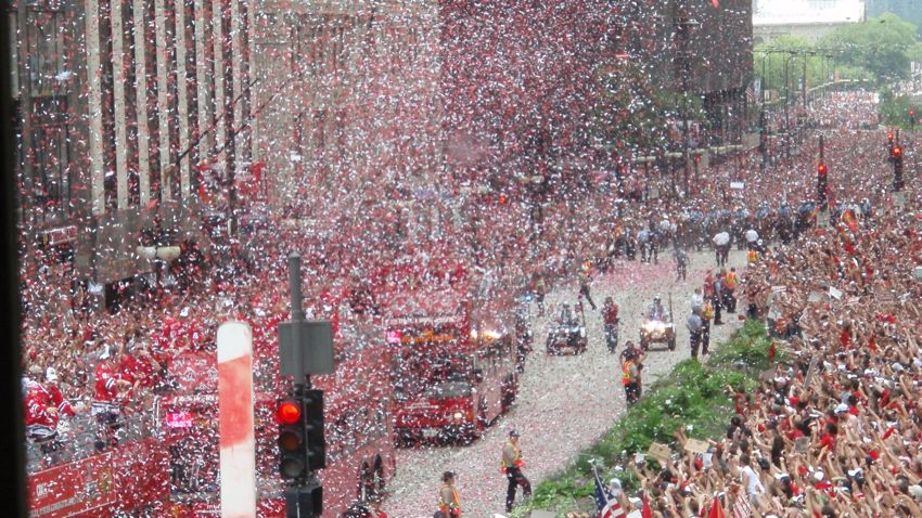 Chicago Blackhawks Stanley Cup parade as seen from the McCormick Bridgehouse & Chicago River Museum 6/11/2010