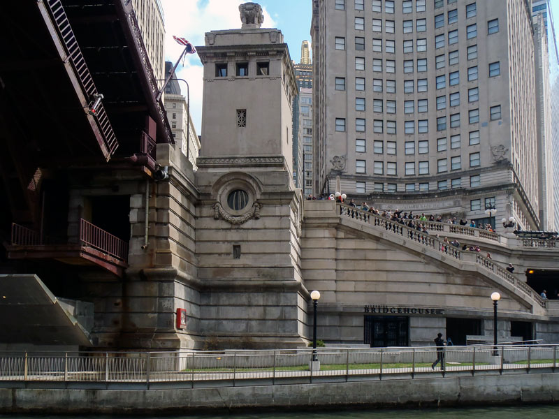 The four neoclassical beaux arts style bridgehouses and its central location make this the most recognizable, and to many the most beautiful, of Chicago's bascules. Functionally, the bridge only needed two bridgehouses for operation (NW and SE corners). The second pair was added to make an architectural statement about the importance of this crossing as a gateway between the north and south sides of the river.