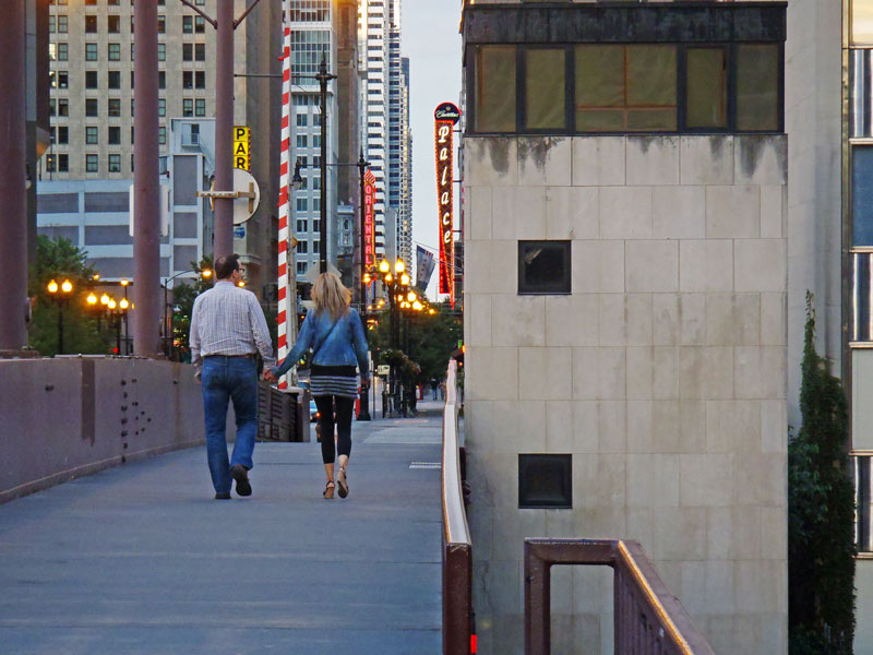As with many of the bridge locations downtown, this Chicago-type bascule bridge is a snapshot in time. The Randolph St. river crossing has been home to movable bridges for about 175 years. These bridges have included floating bridges, center pier swing bridges, and the 1903 rolling lift bridge replaced by the current bridge.