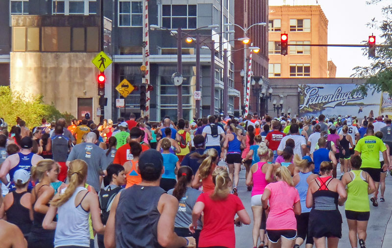 Runners in the 2013 Rock'n'Roll half marathon cross the Randolph St. bridge.
