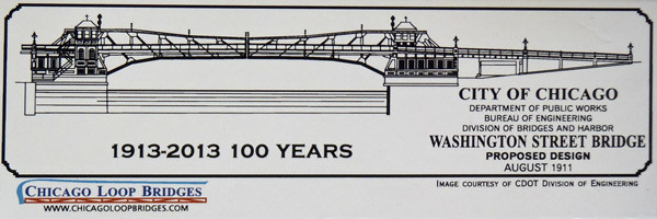 The current bridge crossing the South Branch of the Chicago River at W. Washington Blvd. was opened one hundred years ago on May 26, 1913.