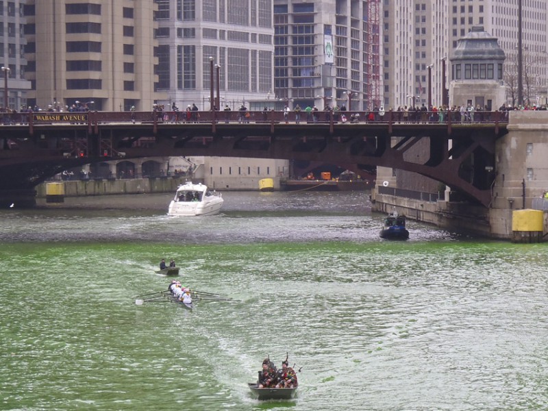 The green river at Wabash Ave. and beyond on the day after its dyeing.