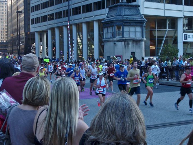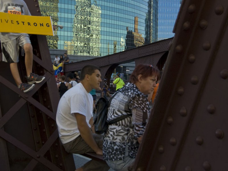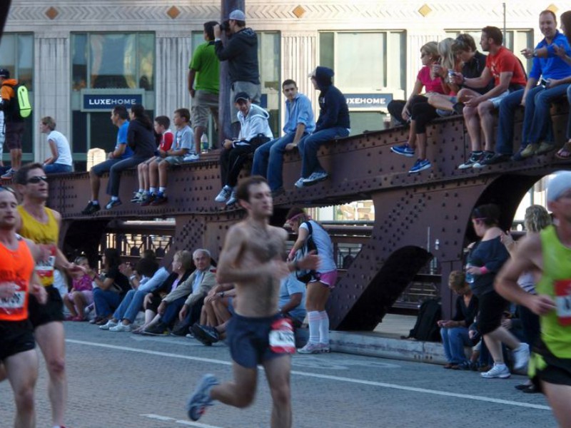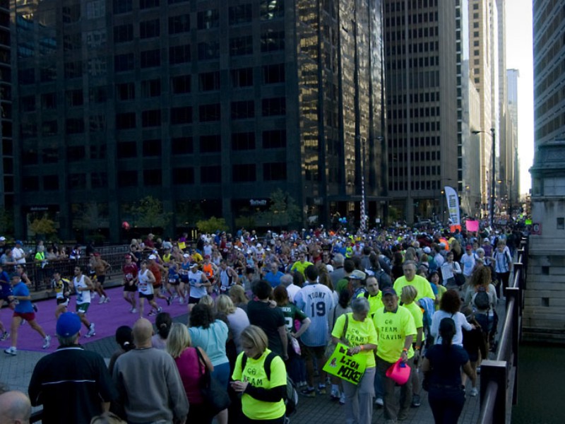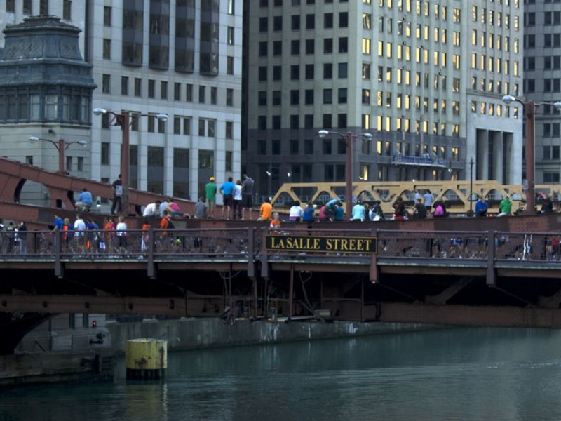 Runners and spectators at the N. La Salle St bridge - ©2011 Patricia Armell