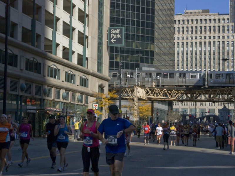 Runners crossing the N. State St bridge - ©2011 Patricia Armell