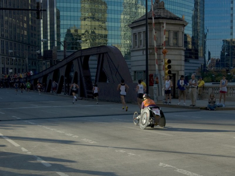Wheel chair athelete crossing the N. Franklin St bridge - ©2011 Patricia Armell