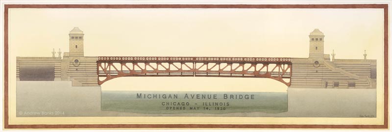 Michigan Avenue Bridge, 12"x36", Watercolor. The first of a new watercolor series by Andrew Banks (© 2014 Andrew Banks)