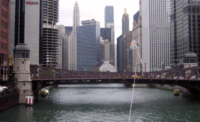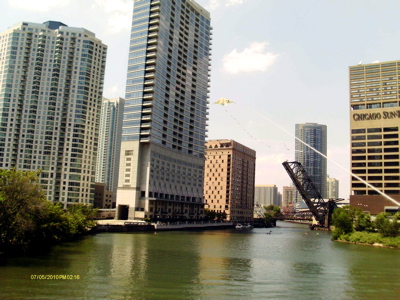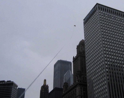 Mike Illich set a goal to fly his kite from the deck of each of the eighteen downtown bridges. On Friday August 20th he added the last four to his list. His kite could be seen flying from the decks of the W. Monroe St., W. Adams St., W. Jackson St. and W. Van Buren St. bridges about the time people were heading home from work.
