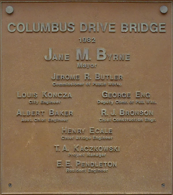Al Baker invited me to a luncheon of retirees from the Chicago Public Works Department (forerunner to CDOT). At this luncheon, I met a number of individuals including Louis Koncza - the City Engineer listed on the Columbus Dr. bridge plaque. Louis granted me an interview as well. Read Louis' story here.